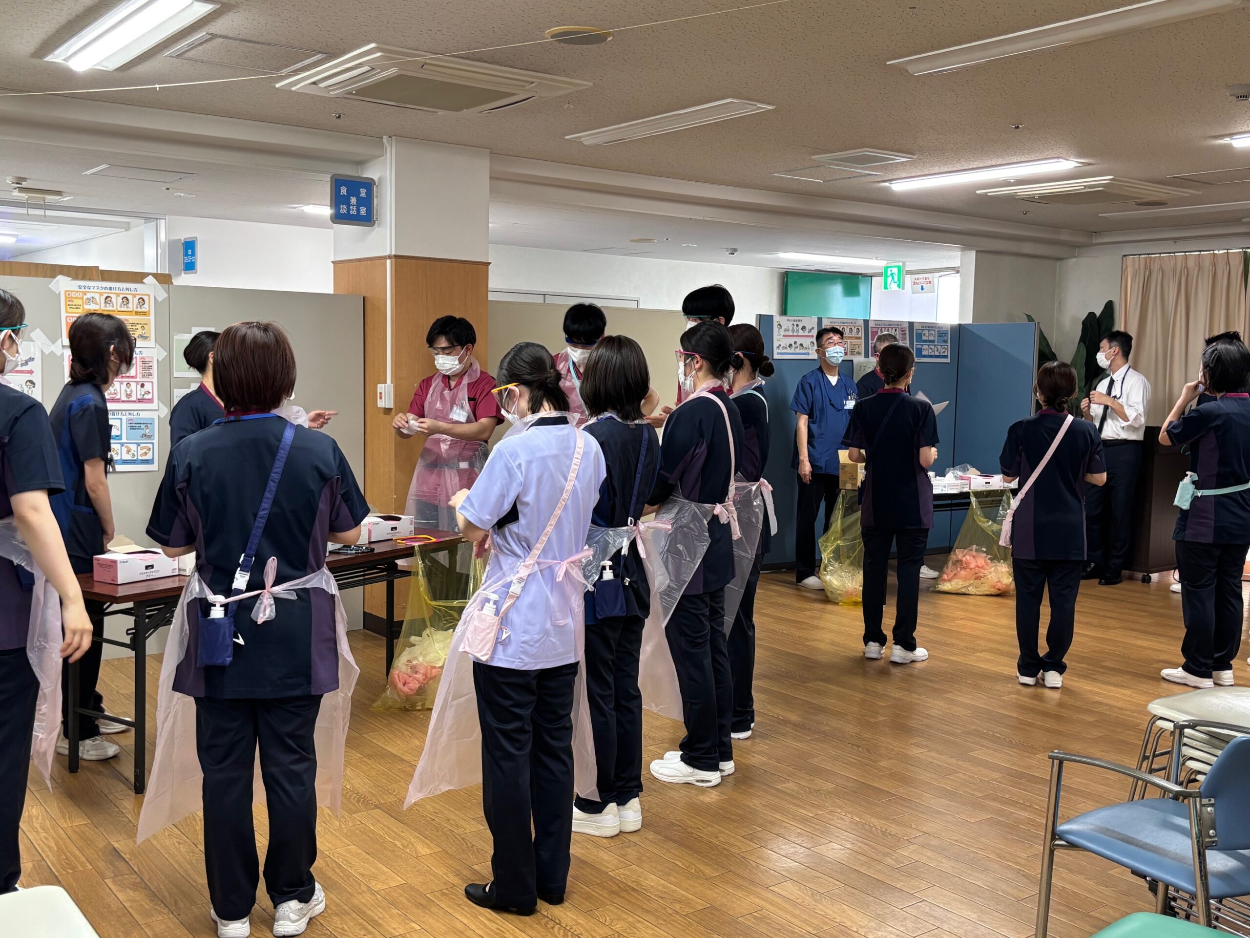 現在近隣住民の皆様のご理解を頂きながら病院建て替えを行っている関係で院内に全員が集合できる場所がなく、今回は西宮市市民局鳴尾支所様のご厚意でホールをお借りして実施させていただきました。