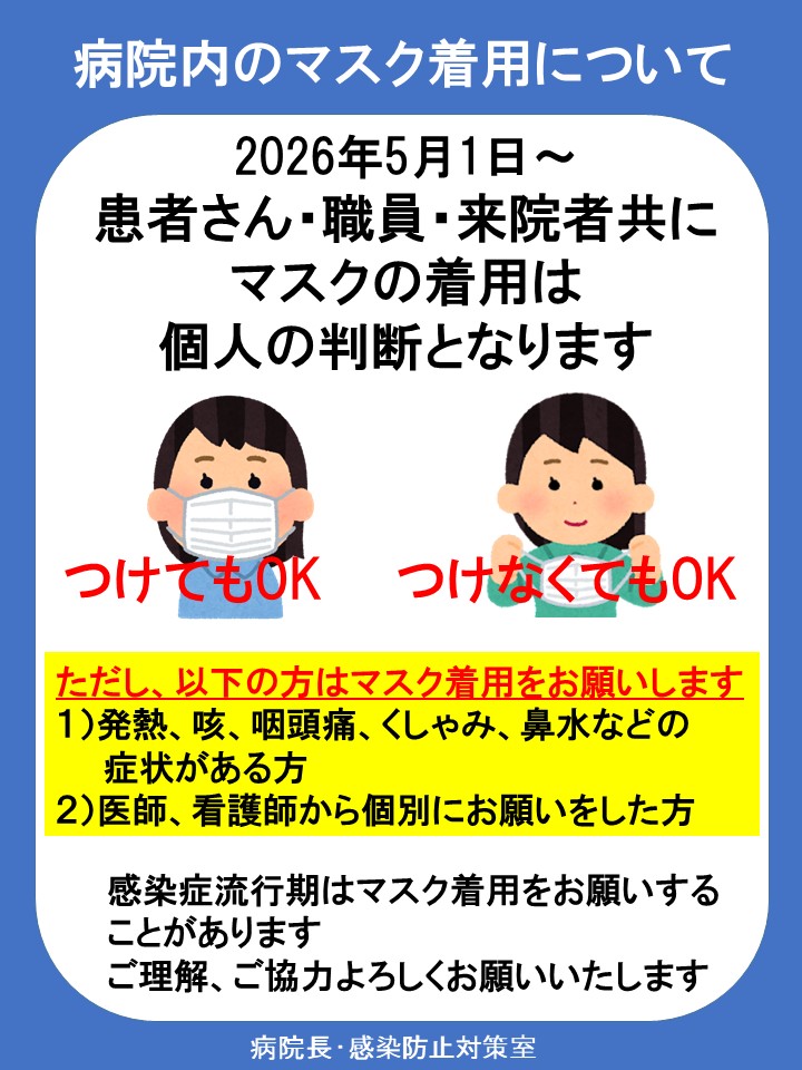 病院内のマスク着用について以下の内容に変更することとしました。