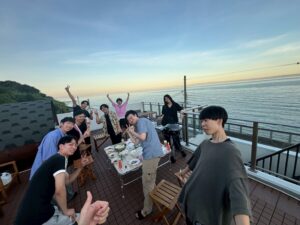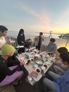 夜は屋上で海を眺めながらバーベキューをしたりサウナに入ったりと充実した1日でした。