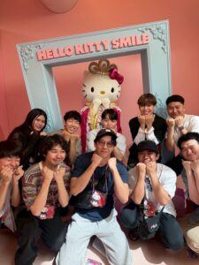 2日目は淡路島のハローキティスマイルへ行き男子10人でキティちゃんと写真を撮ったりしました。