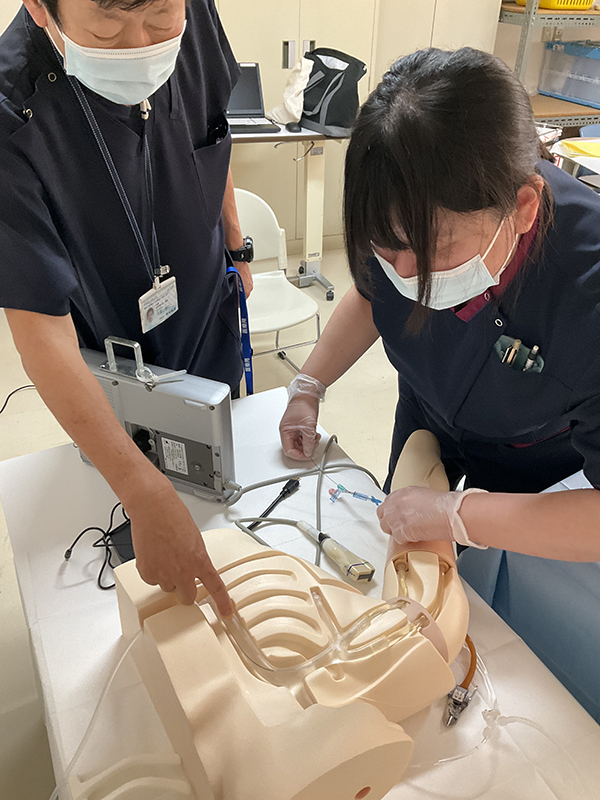 当院では、「地域包括ケアを念頭におき、地域医療及び高度医療の現場において医療を受ける対象者、医療者を支えるために、専門的な知識と技術、態度を身につけた実践者を育成する」ことを目的に、特定行為研修を開講しています。